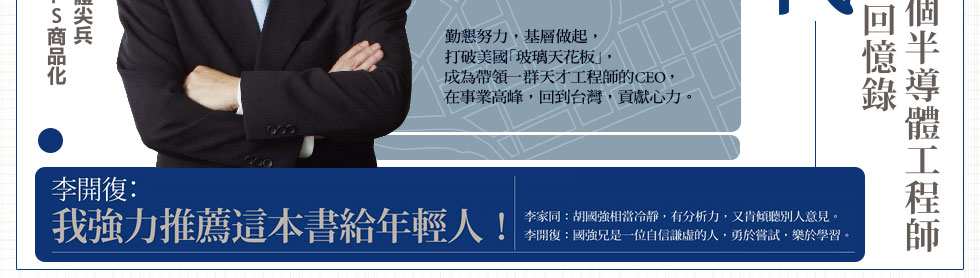 胡先生在台灣時曾經做過聯電的執行長,比較少人知道他在美國的工作經驗,他的工作都和半導體有關。半導體工業是台灣非常重要的工業,看胡先生的書當然不見得就因此而能徹底了解半導體工業是怎麼一回事,但一定會增加對半導體工業的認識。