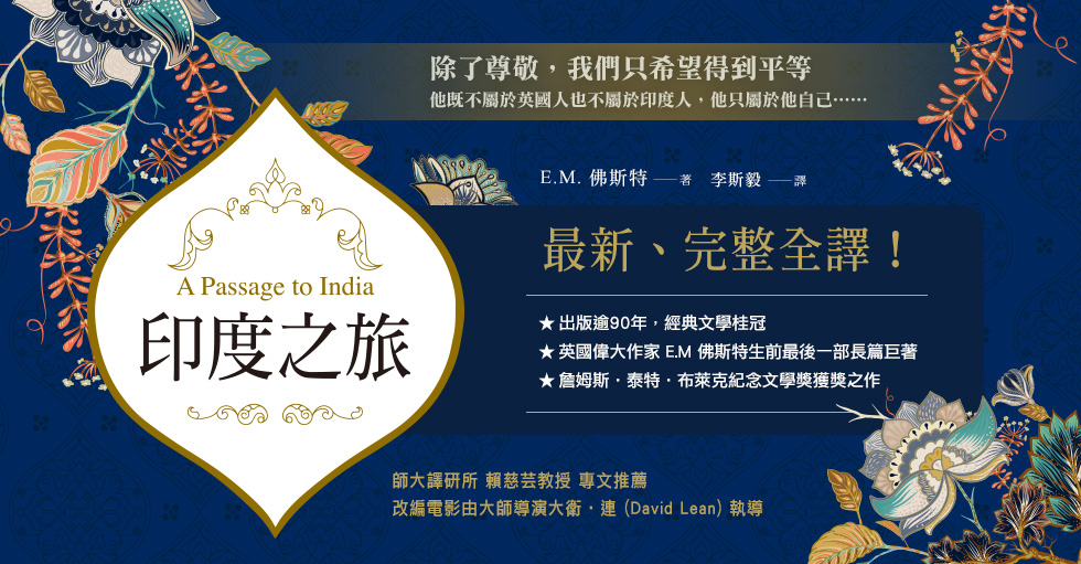 英國作家E. M. Foster的A Passage to India(1924),以英國殖民時期的印度為背景,是他最重要的一部小說,也往往入選各種英國百大小說書單。小說核心為一宗撲朔迷離的性騷擾案件,指控者是剛到印度不久的英國年輕女子,被指控的是好意陪她旅遊的印度籍醫生。英國人大多相信指控為真;印度人全都相信醫生清白;本來與英國人交情深厚的印度醫生心灰意冷,說出在殖民情境下不可能有英印友誼存在。從一個事件引出殖民地的英印族群眾生相,精確的對話、異國風情景物交織著個人的心理欲望,相當引人入勝。